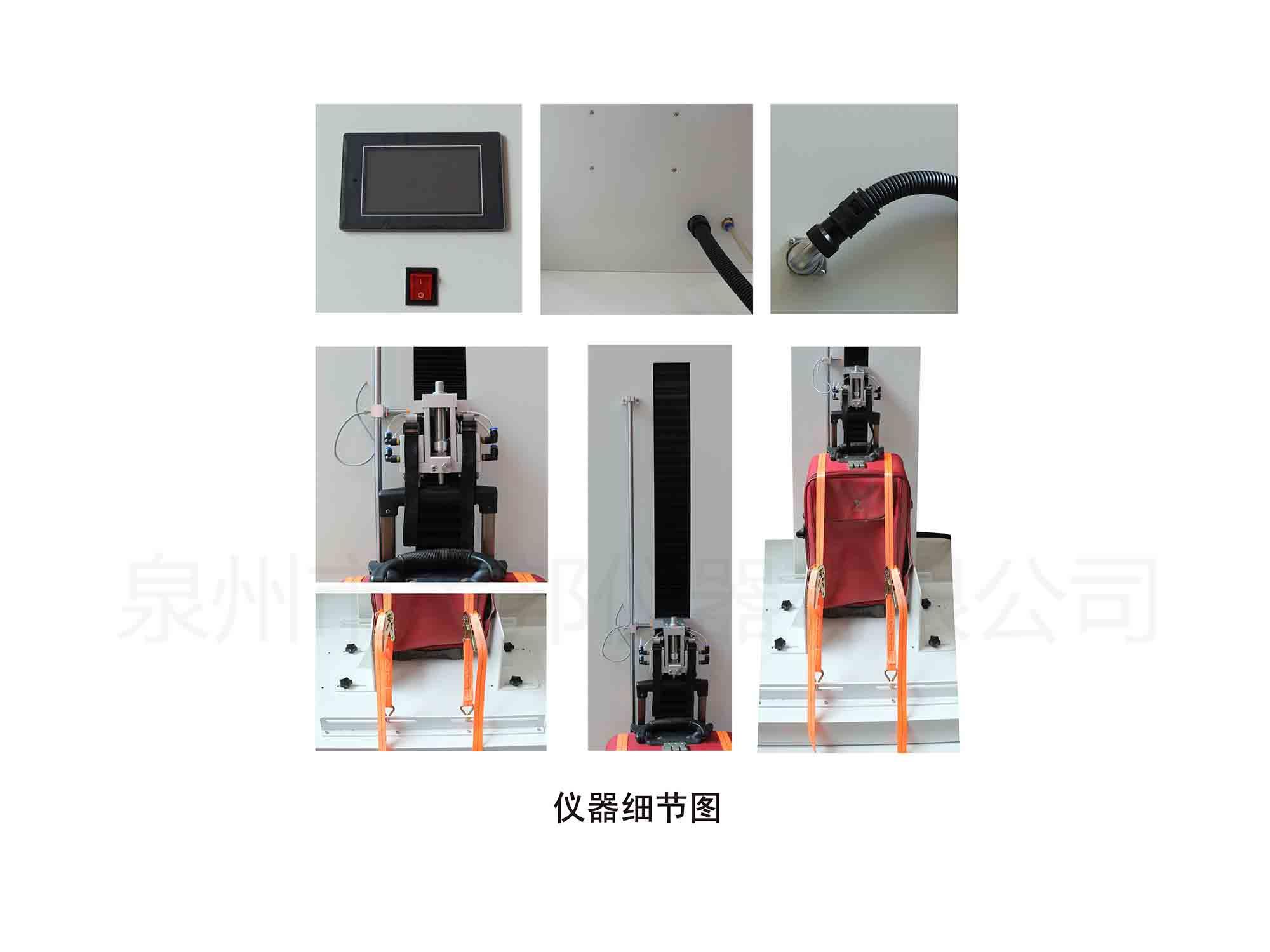 在一定的抽出壓合頻率下通過對箱包的拉桿鎖和拉桿進行聯(lián)續(xù)不斷的開關(guān),往復(fù)拉出,壓合,檢驗拉桿往復(fù)疲勞性能,拉桿的結(jié)構(gòu)牢度和開關(guān)耐用度。