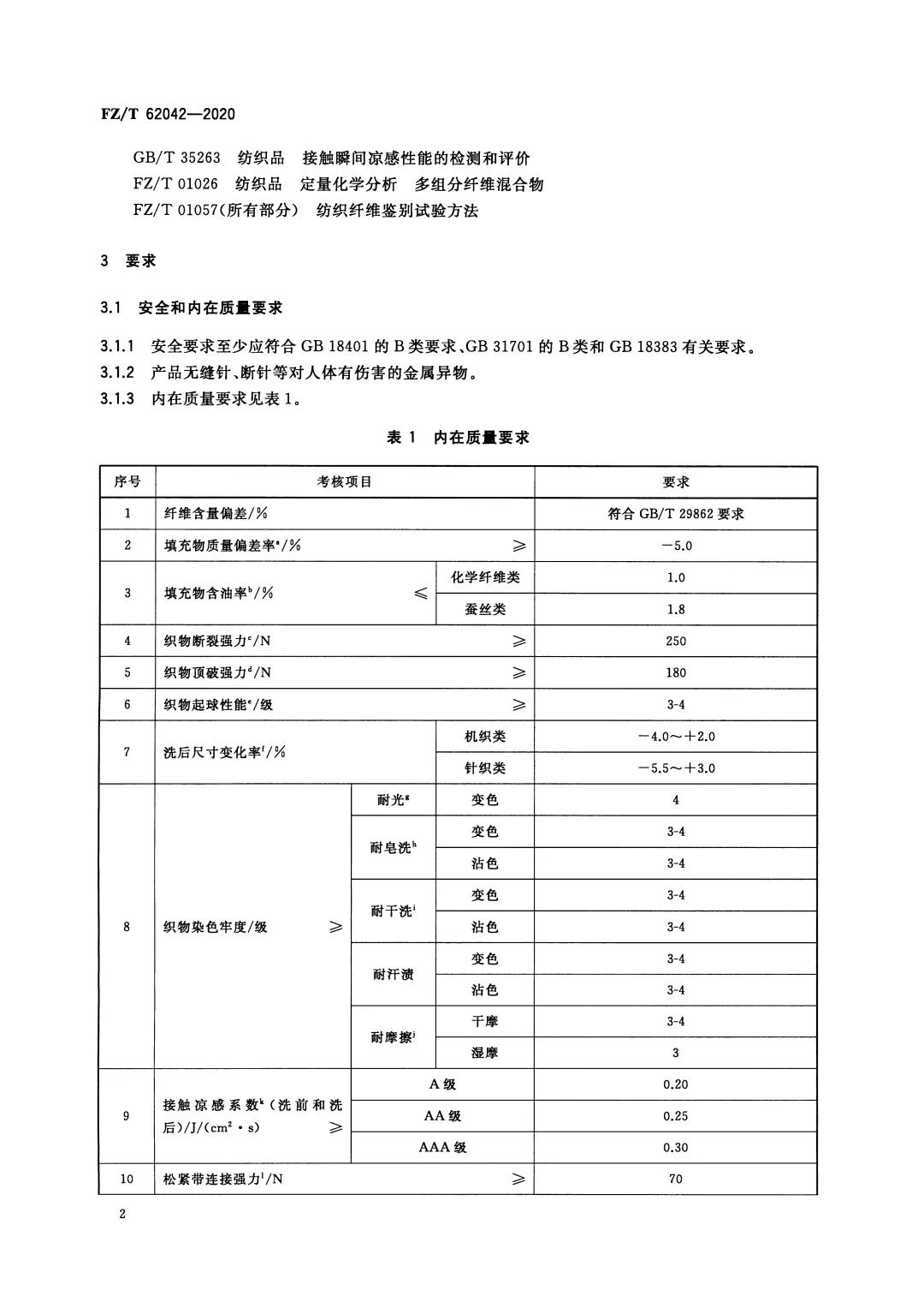 FZ/T 62042《涼感面料床上用品》也是根據(jù)產(chǎn)品的接觸涼感系數(shù)把產(chǎn)品分為三個(gè)等級(jí),A級(jí)產(chǎn)品的接觸涼感系數(shù)不小于0.20、AA級(jí)產(chǎn)品的接觸涼感系數(shù)不小0.25、AAA級(jí)產(chǎn)品的接觸涼感系數(shù)不小于0.30,我們看到床上用品的接觸涼感要求比服裝還要高。