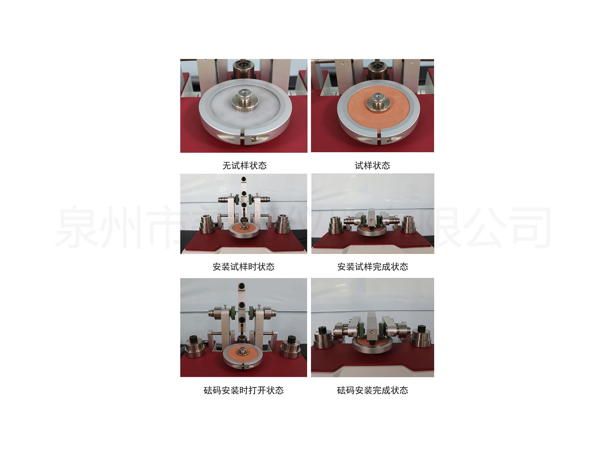 在控制壓力和磨損運(yùn)動的條件下,采用旋轉(zhuǎn)摩擦對樣品進(jìn)行磨損,放在平臺上的測試樣品,對這兩個摩擦輪的滑動旋轉(zhuǎn),在垂直軸上轉(zhuǎn)動,根據(jù)標(biāo)準(zhǔn)方法評估耐磨性。